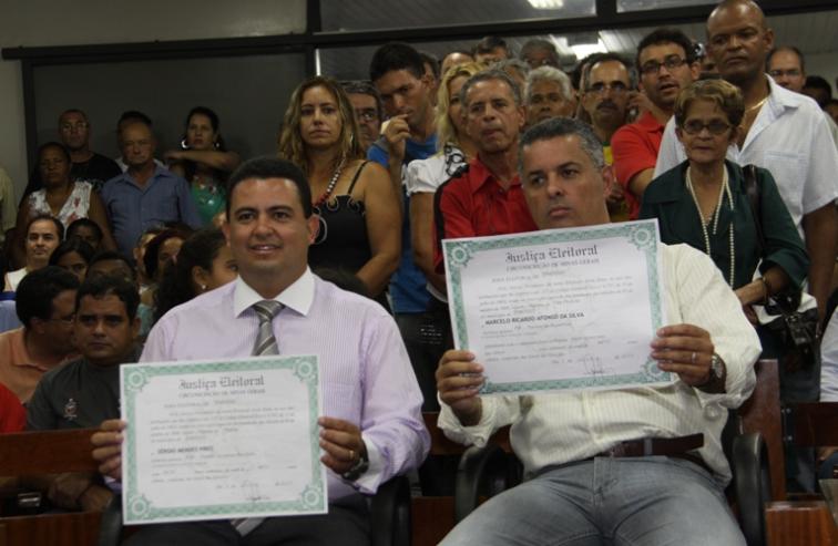 TIMÓTEO - Com o plenário da Câmara Municipal lotado e um atraso de três horas em relação ao horário inicialmente previsto, foi empossado por volta das 13h30 desta sexta-feira o novo prefeito de Timóteo, Sérgio Mendes Pires (PSB) e o vice-prefeito Marcelo Ricardo Afonso (PR).