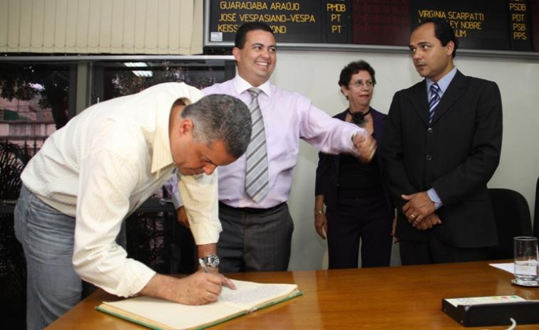 A sessão solene de recondução ao cargo de prefeito aconteceu às 13h35, no plenário da Câmara que ficou lotado de militantes do partido PSB, imprensa, vereadores e comunidade em geral.