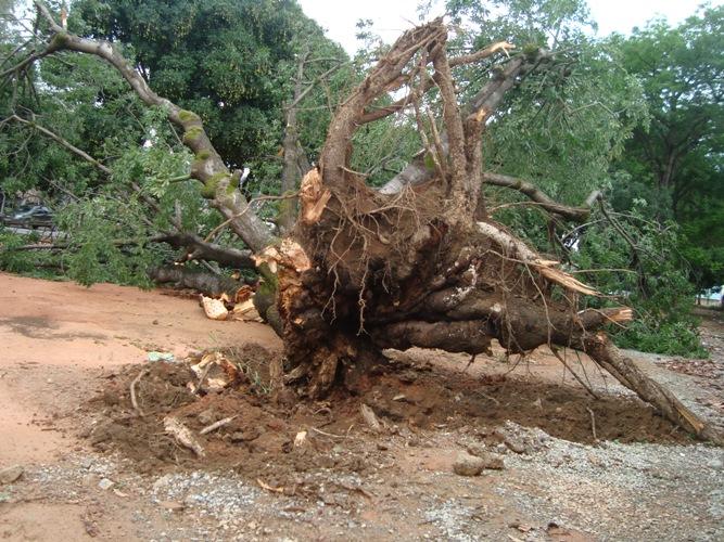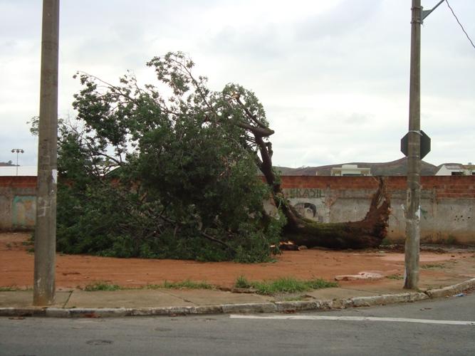 IPATINGA - Durante a chuva de terça-feira, não houve muitos estragos na cidade. Porém, na portaria da Escola Estadual Canuta Rosa, no bairro Cidade Nobre, uma grande e antiga árvore caiu. Até a raiz foi arrancada. No final da manhã de hoje, a árvore seria retirada do local.