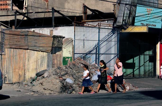 O monturo está colocando também os pedestres em risco. Como o material está acumulado na calçada, eles têm que se desviar dos escombros e passar pela avenida, que recebe um tráfego intenso.