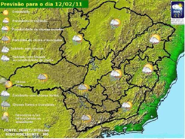 No Noroeste, Centro, Zona da Mata e Norte o forte aquecimento e uma ligeira queda na pressão atmosférica possibilitam condições favoráveis a ocorrência de chuvas em pontos isolados, principalmente à tarde e noite.