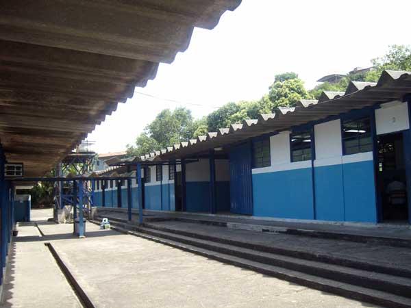 A estrutura deficiente construída com placas de cimento e isopor tem quase 25 anos de uso. Banheiros masculinos estão sem portas e descarga, outros sem luz e quase toda parte interna do prédio, como o piso, salas e equipamentos estão danificados.
