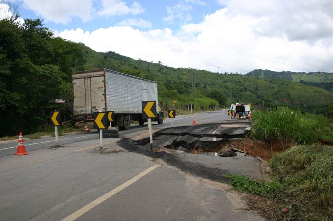 Uma equipe de operários começou a trabalhar no local e terá que retirar grande quantidade de terra na parte de cima da rodovia, entupida pela areia e lama que desce da encosta. Depois será preciso aterrar um buraco com aproximadamente 50 metros de profundidade. A queda da pista foi provocada por uma erosão. Debaixo da pista onde houve o problema existe um tubo arqueado. Ao longo dos anos, uma erosão formou-se na saída do tubo e corroeu as laterais até deixar sem sustentação um trecho de 15 metros de extensão da pista. No dia 31 de dezembro, com o peso do tráfego, a pista desabou. A única providência adotada até então foi cercar a área atingida e instalar placas de sinalização do desvio. Todo o fluxo de trânsito sentido Ipatinga/Belo Horizonte, foi desviado para a esquerda, o que coloca os carros na contramão.