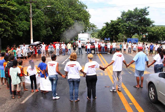 Foram distribuídos panfletos e adesivos, além de lixeirinha para os veículos. Os moradores se deram as mãos, formaram um círculo e rezaram o Pai Nosso.