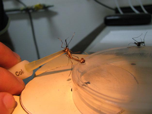 Segundo o especialista, isso se dá porque os adultos do mosquito elefante não copulam em ambientes artificiais. Uma alternativa seria a utilização de uma técnica chamada de cópula induzida ou cópula forçada, onde os machos e fêmeas são anestesiados e a cópula acontece artificialmente. Essa utilização da cópula forçada garante a manutenção da espécie para fins de experimentações laboratoriais. Contudo, ele acredita que para grandes liberações no ambiente, seria necessário o treinamento de pessoal qualificado para desenvolver tal técnica.