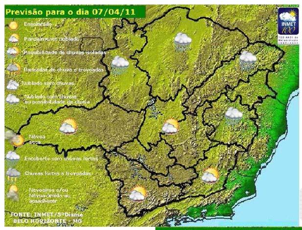 As condições meteorológicas são favoráveis à ocorrência de acumulado de chuva significativo no Nordeste do estado, e declínio de temperatura do ar, nas regiões Sul e Zona da Mata no período entre 00h às 24h desta quinta-feira (07).