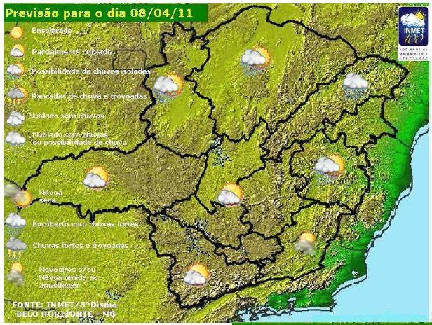 A previsão para esta sexta-feira é de céu parcialmente nublado a nublado com possibilidade de chuva em áreas isoladas. A temperatura varia entre a mínima de 20 graus centígrados e a máxima 32 de ºC.