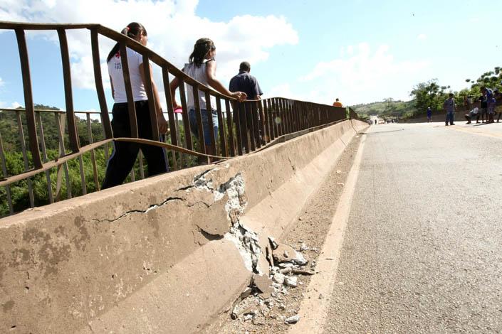 Ponte sobre o Rio das Velhas cede e Dnit fecha tráfego. Motoristas que trafegam pela rodovia devem procurar rotas alternativas