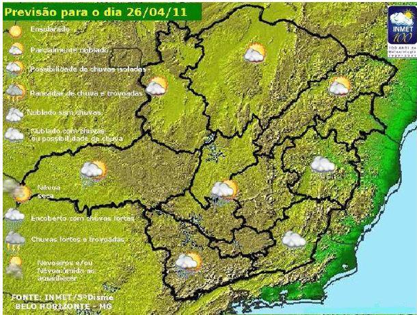 DA REDAÇÃO - Nesta terça-feira, a presença de uma frente fria sobre o litoral do Sudeste continua favorecendo a ocorrência de chuva em parte de Minas Gerais.A chuva deve ocorrer em áreas isoladas do centro-sul e oeste mineiro. As demais regiões terão períodos de sol e a nebulosidade fica variável. Devido ao aumento da nebulosidade e de ventos frios, as temperaturas diurnas sofrem ligeiro declínio no centro-sul do Estado.