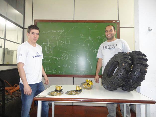 Desenvolvido pelo aluno Bruno Cota e auxiliado por Rafael Deiró, Doulglas Baldez e Bruno Assis, o artigo aborda o sistema de frenagem hidráulico e possui, em sua composição, duas pinças de freios na dianteira do veículo. Na traseira, utiliza-se apenas uma pinça de kart.