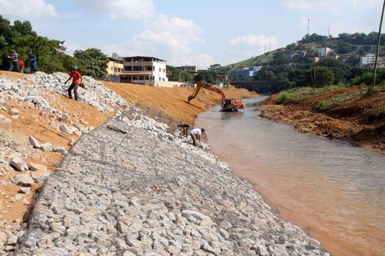O padrão que estamos adotando é o mesmo empregado no mundo inteiro. O colchão visa evitar que um volume maior de água cause erosões ao longo do curso do ribeirão. Nos terrenos instáveis, obras em gabiões e colchões representam uma solução tecnicamente válida e de menor custo”, explica.
