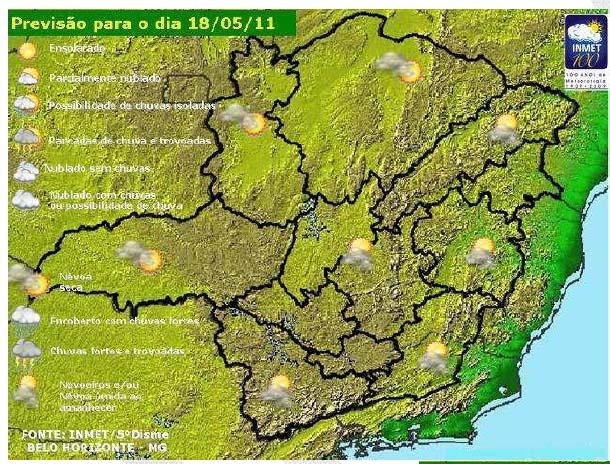 DA REDAÇÃO - A massa de ar Polar que atinge o Centro-Sul do Brasil possibilita a queda de temperaturas em grande parte das regiões de Minas Gerais nesta quarta-feira. Entretanto, a partir de quinta-feira, esta massa de ar deve começar a perder força e as temperaturas tenderão a se estabilizar.O tempo deverá variar entre parcialmente nublado e ensolarado em todas as regiões do estado com ocorrência de nevoeiros na faixa Leste e Nordeste. Névoa úmida no Centro-Sul e Zona da Mata e névoa seca à tarde sobre o Triângulo, Oeste e Noroeste.