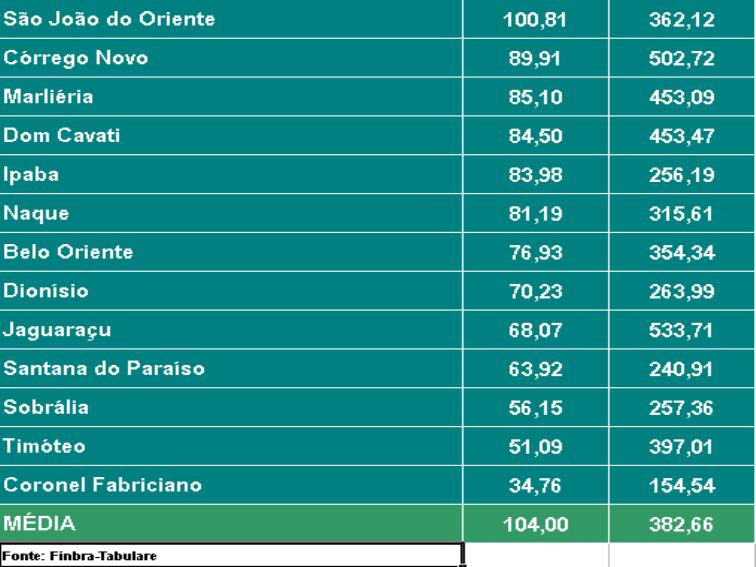 Os municípios de Timóteo e Coronel Fabriciano são os dois da RMVA que menos recursos recebem, proporcionalmente, do Sistema Único de Saúde (SUS). Enquanto a média por habitante é de R$ 104, de 24 municípios apurados, Coronel Fabriciano recebe R$ 34,76 e Timóteo, R$ 51,09. O terceiro município mais sacrificado é Sobrália, com R$ 56,15; seguido de Santana do Paraíso, R$ 63,92; e Jaguaraçu, R$ 68,07.