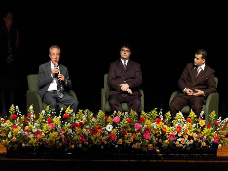 A primeira palestra da noite foi proferida pelo professor PhD. John Stone, diretor do Centro de Intercâmbio Internacional em Reabilitação do Ministério da Saúde dos EUA, integrante da comitiva da Universidade do Estado de Nova Iorque (SUNY), campus Buffalo (EUA). O docente falou sobre o tema World Report on Disability - Relatório Mundial sobre a Deficiência: relevância para clínica, pesquisa e efetivação de direitos”.