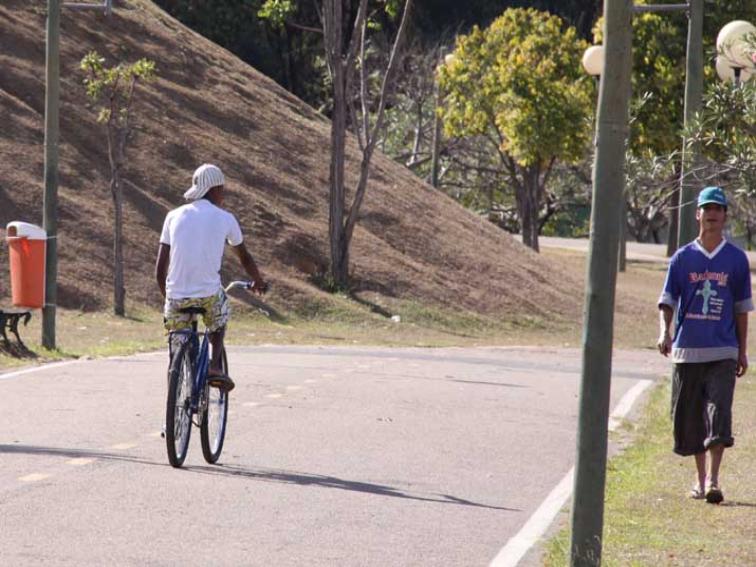 Por volta das 15h30 de ontem, muitos ciclistas trafegavam pelo local. A estudante Thalia Lourrayne de Moura, por exemplo, alegou desconhecer a lei que proíbe o veículo no parque em alguns horários. Não sabia que era proibido andar de bicicleta por aqui, ninguém nunca me informou a respeito”, justificou. Mas a reportagem constatou placas dispostas em toda a pista de caminhada da área de lazer.