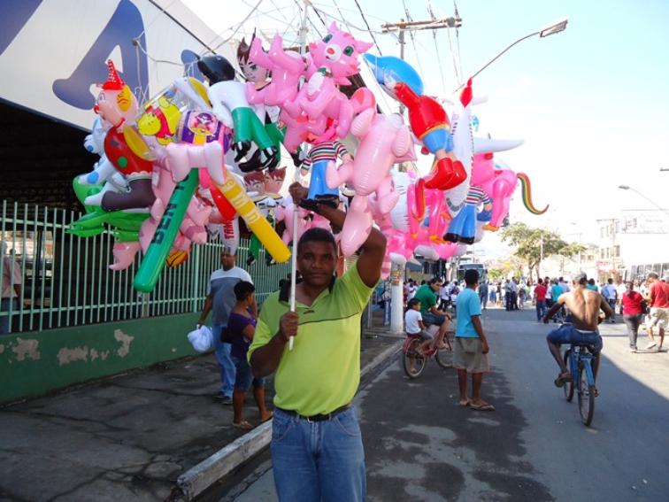 Se a festa da pátria é uma oportunidade de lazer para muitos para o comerciante Osmar de Oliveira, 42, o evento é oportunidade de trabalho. Osmar e a esposa saíram de Timóteo para ganhar um dinheiro extra com a venda de brinquedos infláveis para crianças. Eu aproveito essas festas para participar com meu trabalho e vale a pena se empenhar nesse dia de feriado”, contou.