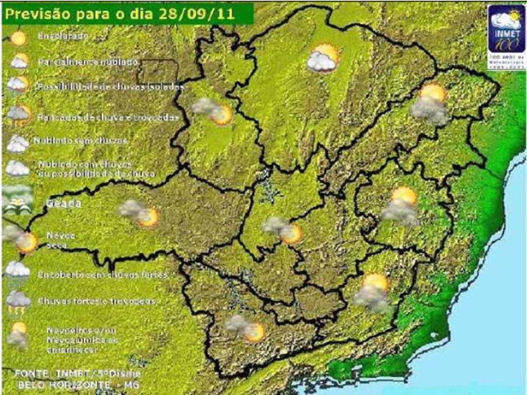 Baixos índices de umidade do ar à tarde devem ocorrer nos municípios situados no setor Norte, Centro e Oeste Mineiro. Nos próximos dias, a tendência é de tempo seco em todo estado. No Vale do Aço a previsão é de céu parcialmente nublado com nevoeiro pela manhã. As temperaturas variam 11 graus centígrados e 33ºC.