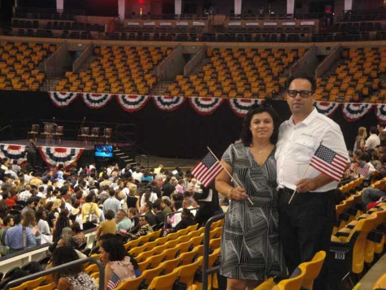 O juramento simbólico de amor à pátria norte-americana foi feito por uma menina do Vietnã, e acompanhada por todos. Antes de encerrar a cerimônia, todos cantaram o Hino Nacional e assistiram nos gigantescos telões a saudação oficial do presidente Barack Obama aos seus novos compatriotas. Antes de deixarem o Garden, todos recebiam uma espécie de certidão que lhes garantia, a partir daquele momento, a tão sonhada cidadania norte-americana.
