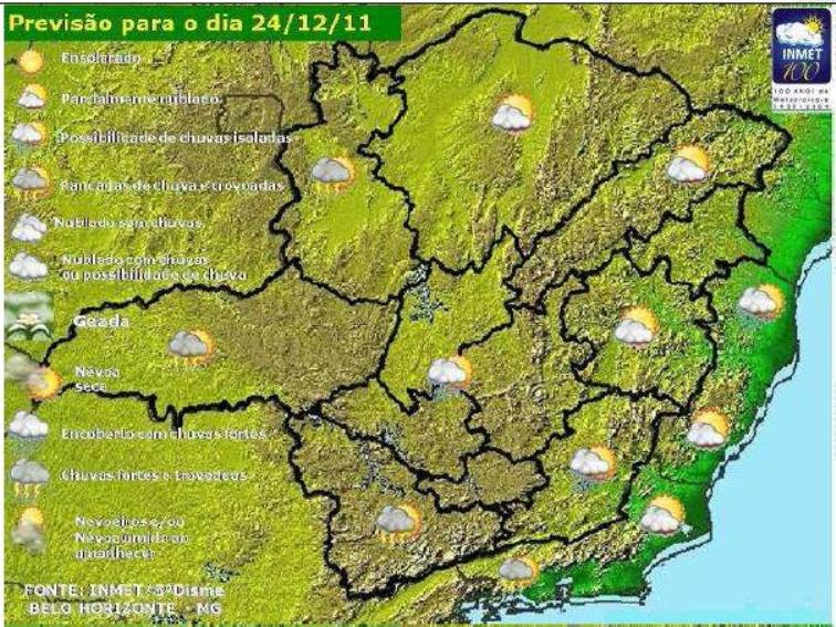 Neste sábado, as condições meteorológicas são favoráveis à ocorrência de chuvatípica de Verão, especialmente, nos municípios situados no Sul e Oeste de Minas