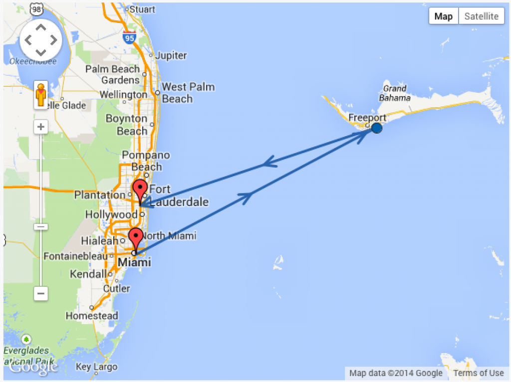 A dinâmica da travessia exige uma viagem de avião até às Bahamas, que não exigem vistos de entrada de brasileiros para viagens de turismo de até 15 dias e, de lá, tentam chegar aos Estados Unidos em navios ou barcos clandestinos. Além de enfrentar os 80 quilômetros de mar, a fiscalização estadunidense é rigorosa na rota e as prisões de imigrantes ilegais são frequentes.