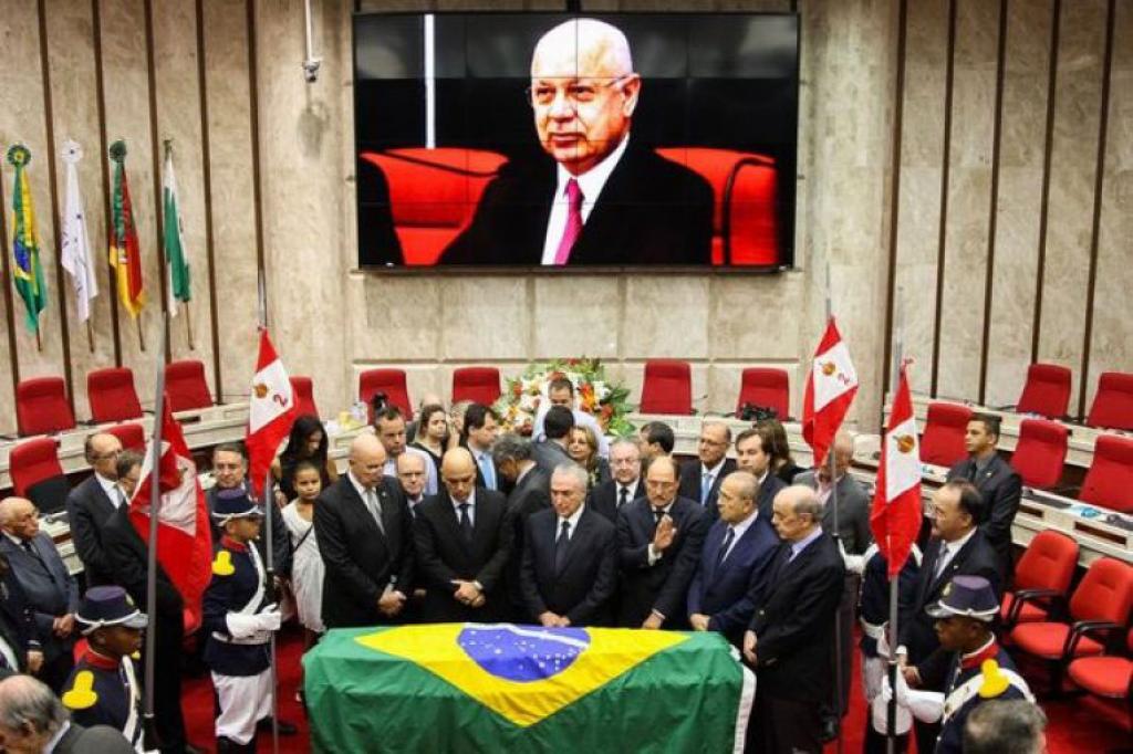 Temer chegou ao velório no início da tarde, após ter pousado na base aérea de Canoas. A cerimônia ocorreu na sede do Tribunal Regional Federal da 4ª Região (TRF-4), em Porto Alegre. O presidente da República viajou acompanhado do presidente da Câmara, Rodrigo Maia (DEM), do ministro da Justiça, Alexandre de Moraes, e do ministro das Relações Exteriores, José Serra.