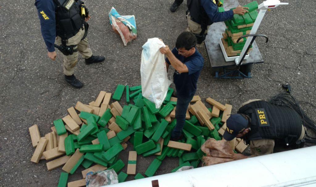 Os tabletes somaram cerca de 300 quilos. O veículo, com placa de Uberlândia, foi interceptado na BR-040, em Nova Lima. Dois homens, C.J.A., de 45 anos, que conduzia o caminhão e G.A.M., de 32 anos, que dirigia uma picape Toyota Hilux, atuando como batedor, foram presos. A PRF apurou que a carga da droga tinha como destino a cidade do Rio de Janeiro.