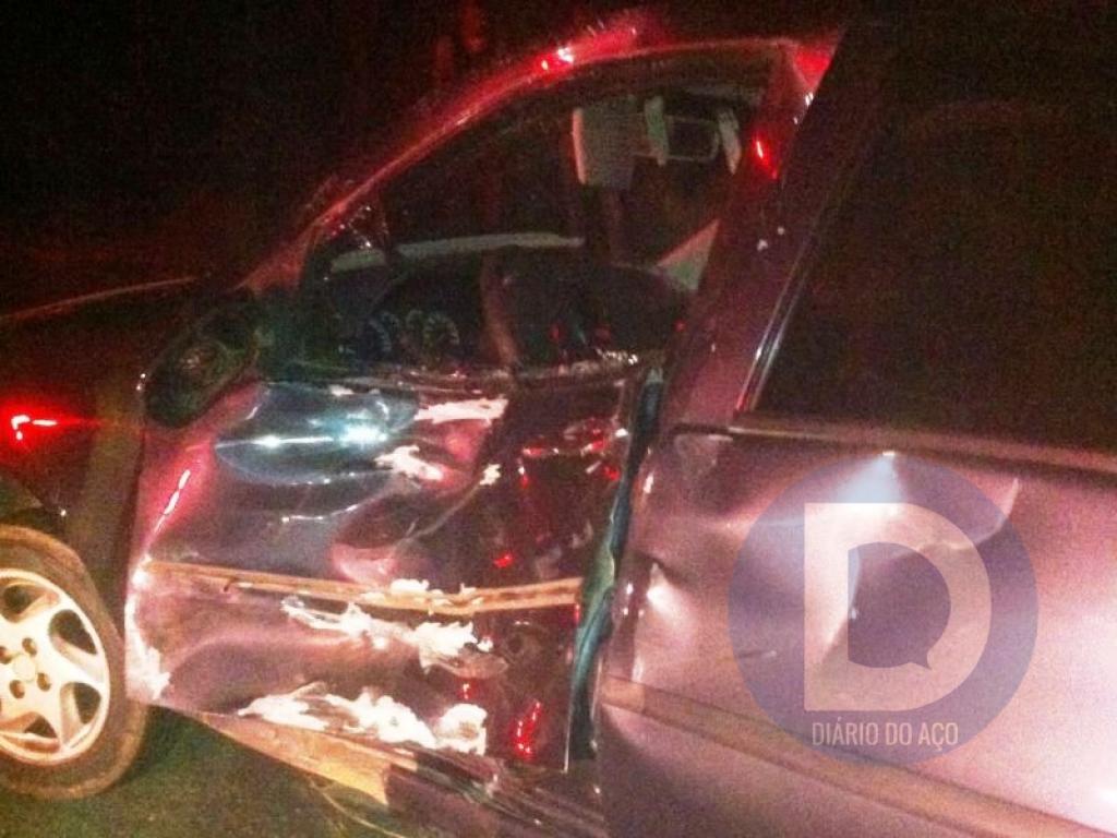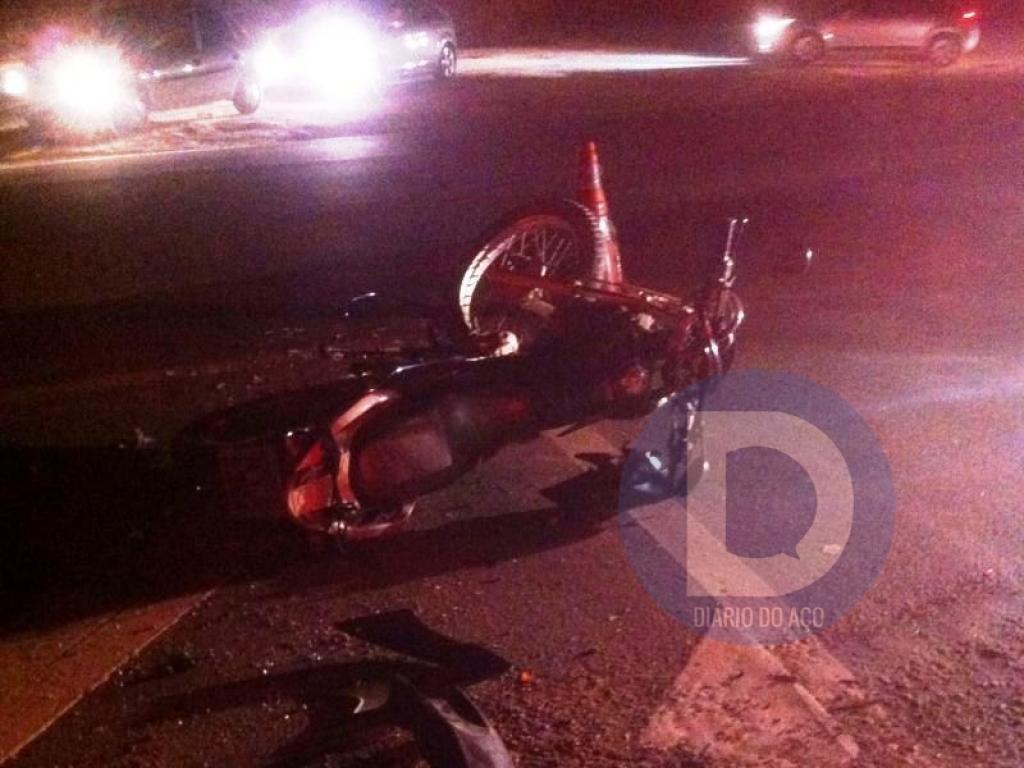 O carro foi atingido na lateral esquerda pela motocicleta