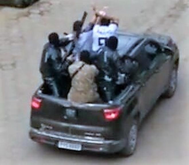 Os reféns foram levados na carroceria da picape, com as mãos para o alto. Com os reféns usados como escudo, o cabo Marques não pode efetuar disparos contra a caminhonete, avaliam policiais ao assistirem aos vídeos feitos pela população.