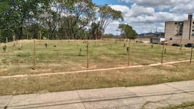 Estacas foram ainda usadas para garantir a estabilidade das mudas. A expectativa é que outras duas instalações parecidas ainda sejam criadas no município.