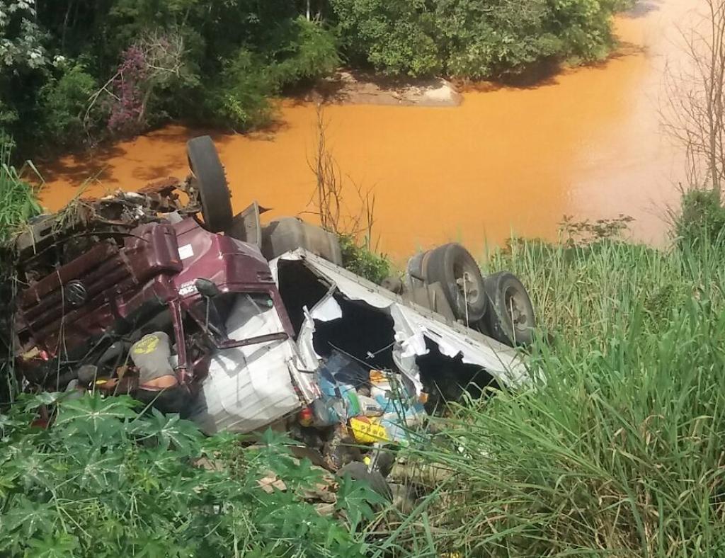 Caminhão bate em fila de carros parados e cai de ponte na BR-262 arrastando veículos