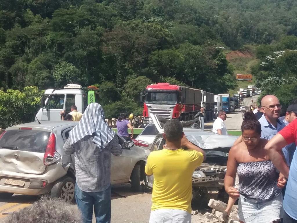 Acidente aconteceu sobre a ponte do rio Piracicaba, na BR-262, perto do entroncamento com a BR-381 Um acidente no começo da tarde desta terça-feira (27), sobre a ponte do rio Piracicaba, perto do entroncamento da BR-262 com a BR-381 deixa o trânsito completamente parado, quatro veículos de passeio e um caminhão destruídos. O congestionamento atingiu as duas rodovias federais.