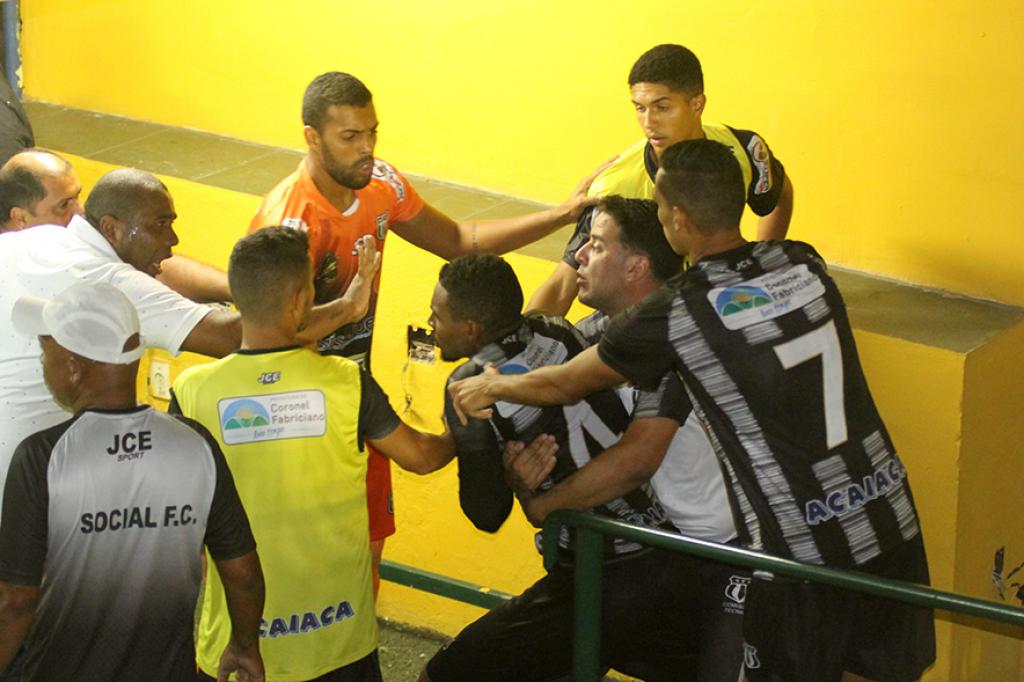 Na sequência, o atacante acabou provocando um enorme tumulto ao comemorar o tento perto do banco do Saci. O artilheiro e Halef Pitbull foram expulsos. Mesmo assim os ânimos continuaram exaltados, seguindo-se uma briga generalizada envolvendo jogadores, membros das comissões técnicas, auxiliares e pessoas próximas ao gramado. Na confusão, Paulinho, do Social, foi mandado para o chuveiro mais cedo. O técnico Conrado, conforme a citação do árbitro na súmula, foi expulso por empurrar e confrontar PH, e ainda pela troca de socos e chutes com Altamiro Gomes (Tamirim), supervisor do Ipatinga. Nos acréscimos, o ambiente continuou muito tenso. E Lucas, do Social, recebeu o cartão vermelho por ofensa à arbitragem, depois de cometer uma falta e insinuar que houve favorecimento ao Tigre. No caso de PH, depois de marcar o gol da virada, ele levou o amarelo por tirar a camisa. O segundo cartão foi aplicado pelos excessos perto do banco socialino.