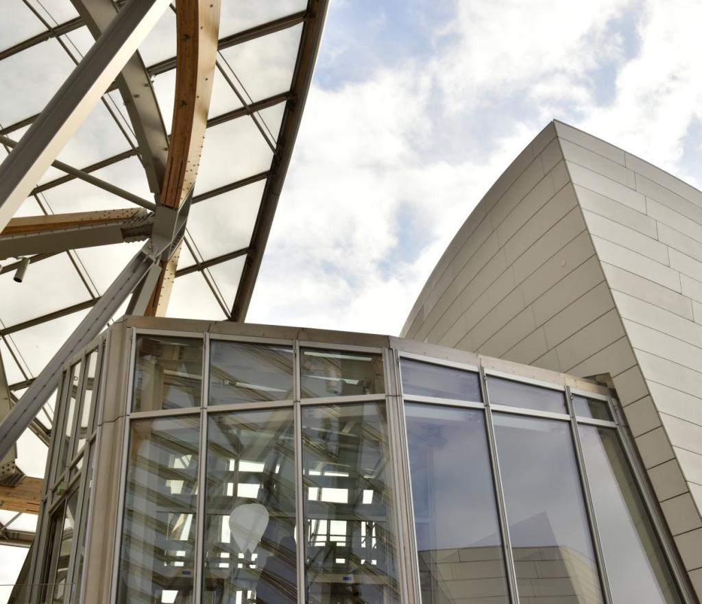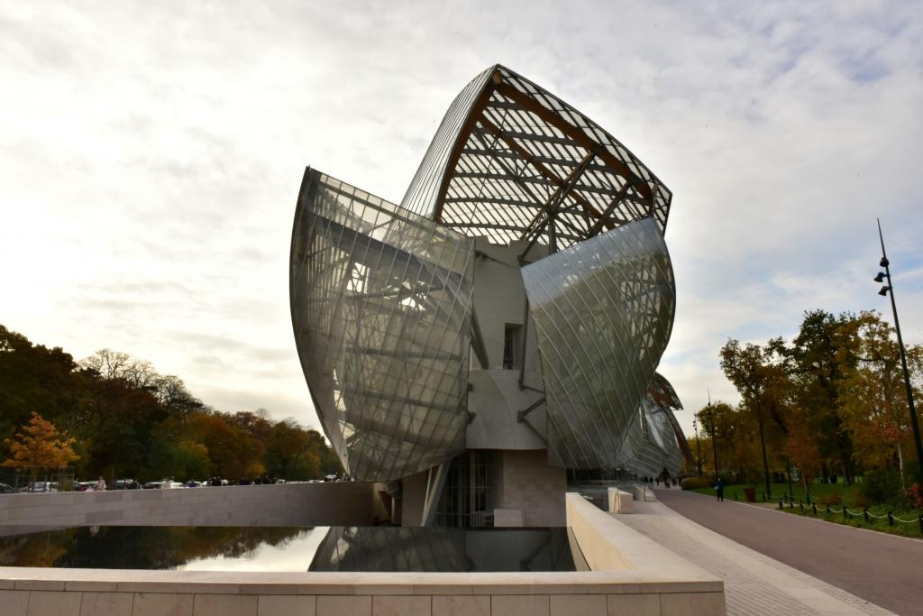 Já a fundação, que fica no charmoso bairro de Bois de Boulogne tem uma arquitetura gigantesca feita com enormes placas de vidro que remetem às velas” de navio, que estão sobrepostas sustentadas com pilares de madeira. Esta escultura monumental tem por função mostra toda a imponência da marca, sendo verdadeira obra de arte feita para receber a coleção privada de Bernard Arnaut, da LVMH conglomerado das principais marcas de luxo e também alojar artes contemporâneas.