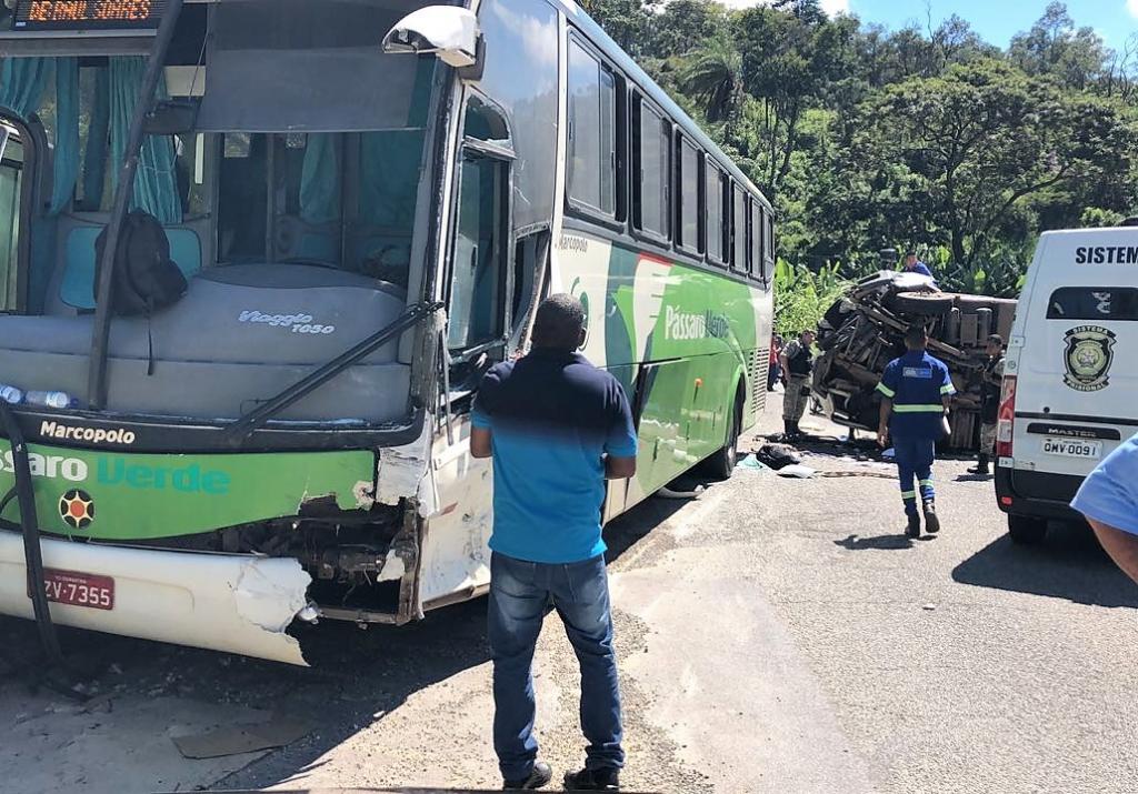 Colisão entre ônibus e caminhão baú, ocorreu no fim da manhã desta segunda-feira, na BR-381 em Caeté