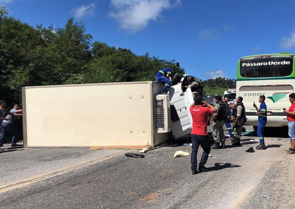 Acidente entre caminhão baú e ônibus deixa um ferido na BR-381