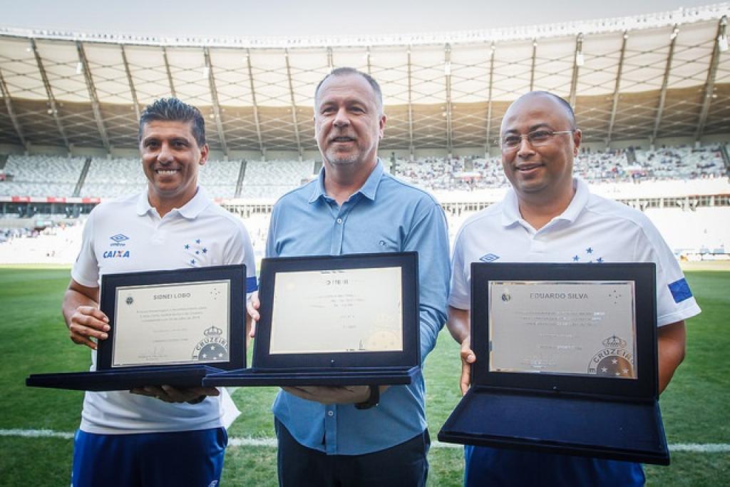 Mano recebeu uma placa pelos seus dois anos à frente do Cruzeiro. O auxiliar técnico Sidnei Lobo e o preparador físico Eduardo Silva também foram agraciados