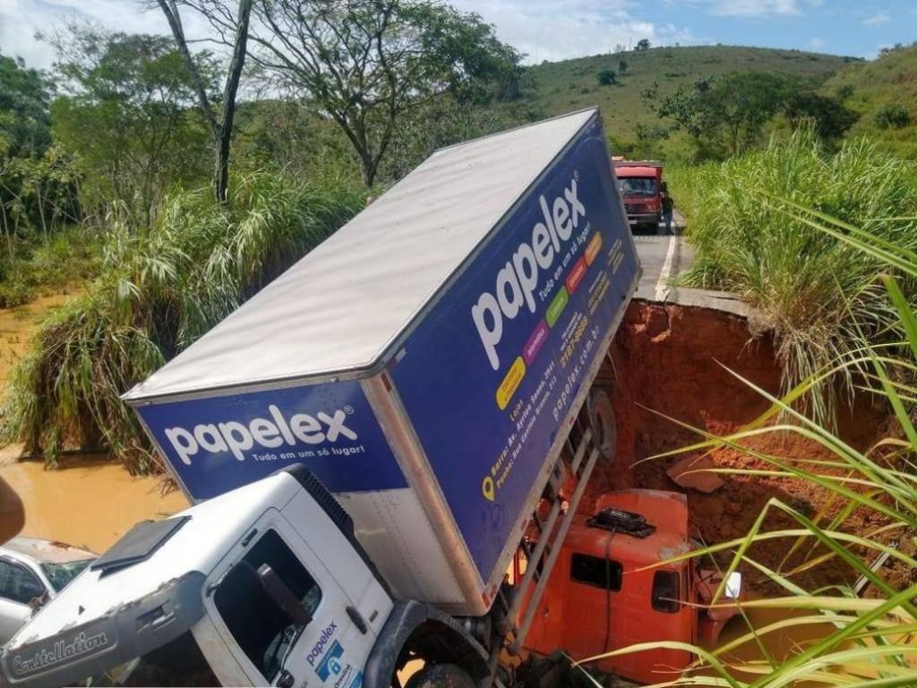 As águas abriram uma cratera na Rodovia MG-133