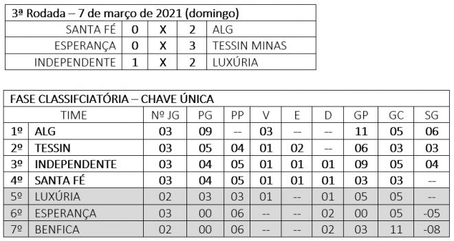 A terceira rodada foi marcada por maior equilíbrio nos confrontos, pela primeira vitória do TESSIN, atual bicampeão do torneio, além de recuperação do Luxúria, outra tradicional equipe local, que detém o título do Campeonato Verão 2020.