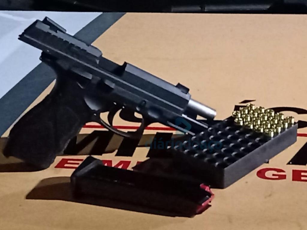O motorista alegou que não tinha nenhuma arma, contudo, os PMs realizaram busca no Mitsubishi e localizada uma pistola calibre 380 no console central do veículo. Ela estava com 19 cartuchos intactos.