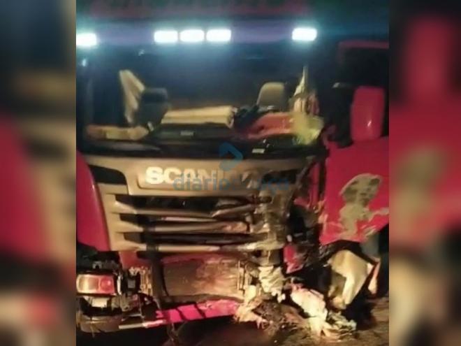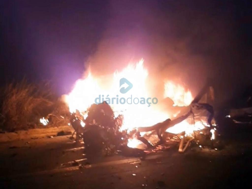 Carro, depois de colidir frontalmente com um caminhão Scania, se incendiou na noite de quarta-feira matando o condutor de 40 anos e a adolescente de 17 anos
