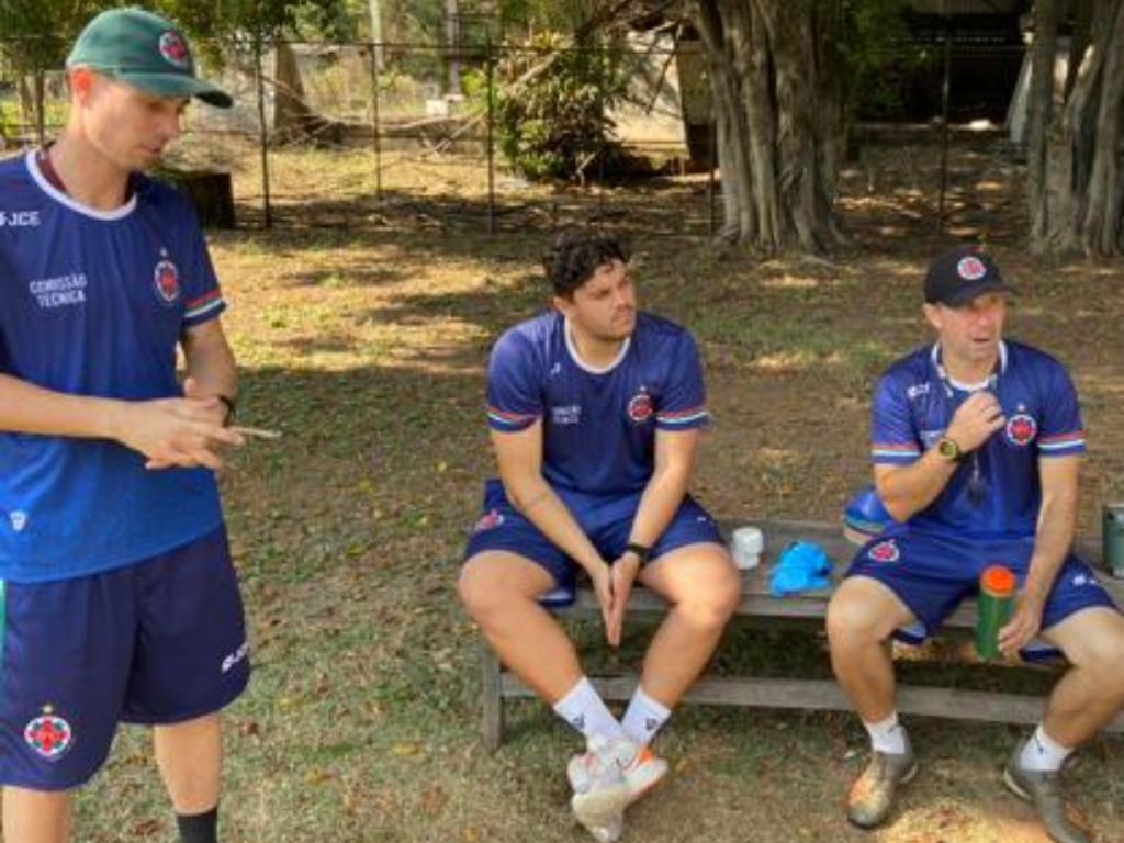 O treinador Alessandro Nunes, o preparador de goleiros Hugo Rodrigues e o preparador físico Tales Warol seguem comandando atividades diárias para deixar o elenco em forma até a estreia no Módulo B
