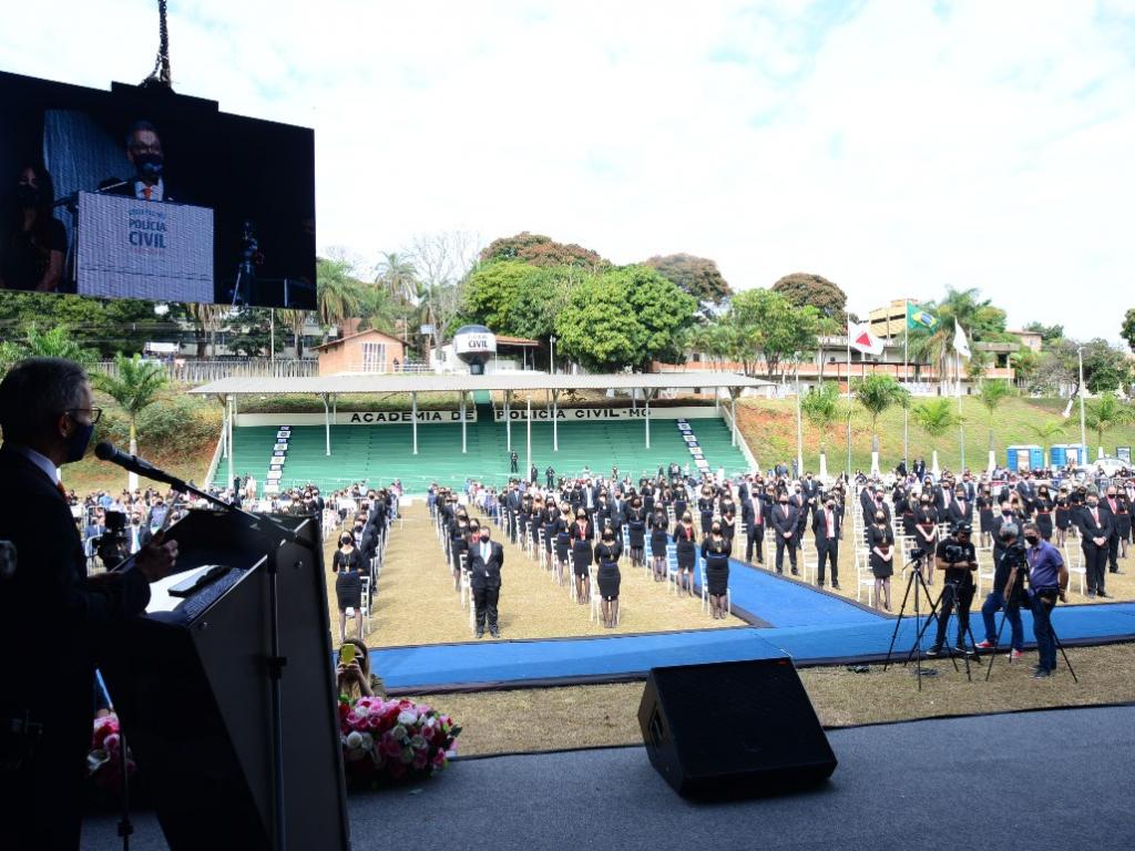 O governador Romeu Zema (Novo) anunciou, nesta quarta-feira (7), a abertura de concurso público para até 684 vagas para a Polícia Civil de Minas Gerais (PCMG). Zema também comunicou que serão chamados 80 profissionais que ficaram como excedentes do último concurso da instituição, em 2018. Os anúncios foram feitos durante a formatura de 73 escrivães e 30 delegados de polícia, em cerimônia na Academia de Polícia Civil, em Belo Horizonte.