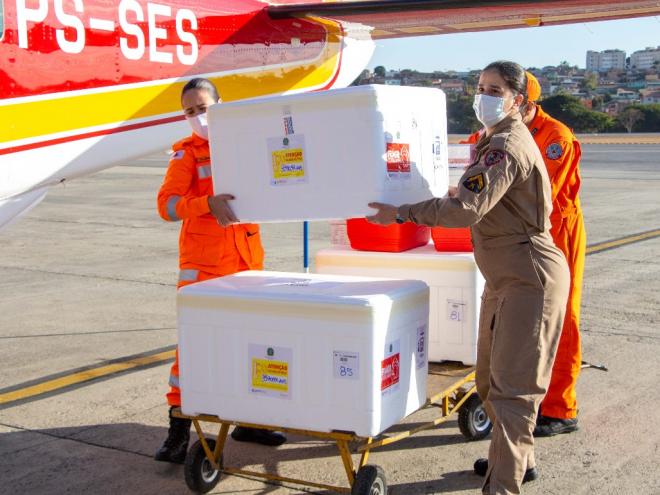 O transporte aéreo tem contribuído com a agilidade e segurança sanitária na maior operação de vacinação da história de Minas Gerais, no enfrentamento à pandemia. Nessa quinta-feira (29/7), a aeronave Arcanjo 09, em sua primeira missão, transportou parte das doses de vacinas contra covid-19 e influenza para Unidades Regionais de Saúde (URSs) do estado. O voo foi operado pelo CBMMG e, os imunizantes, distribuídos para Patos de Minas, Unaí e Teófilo Otoni.
