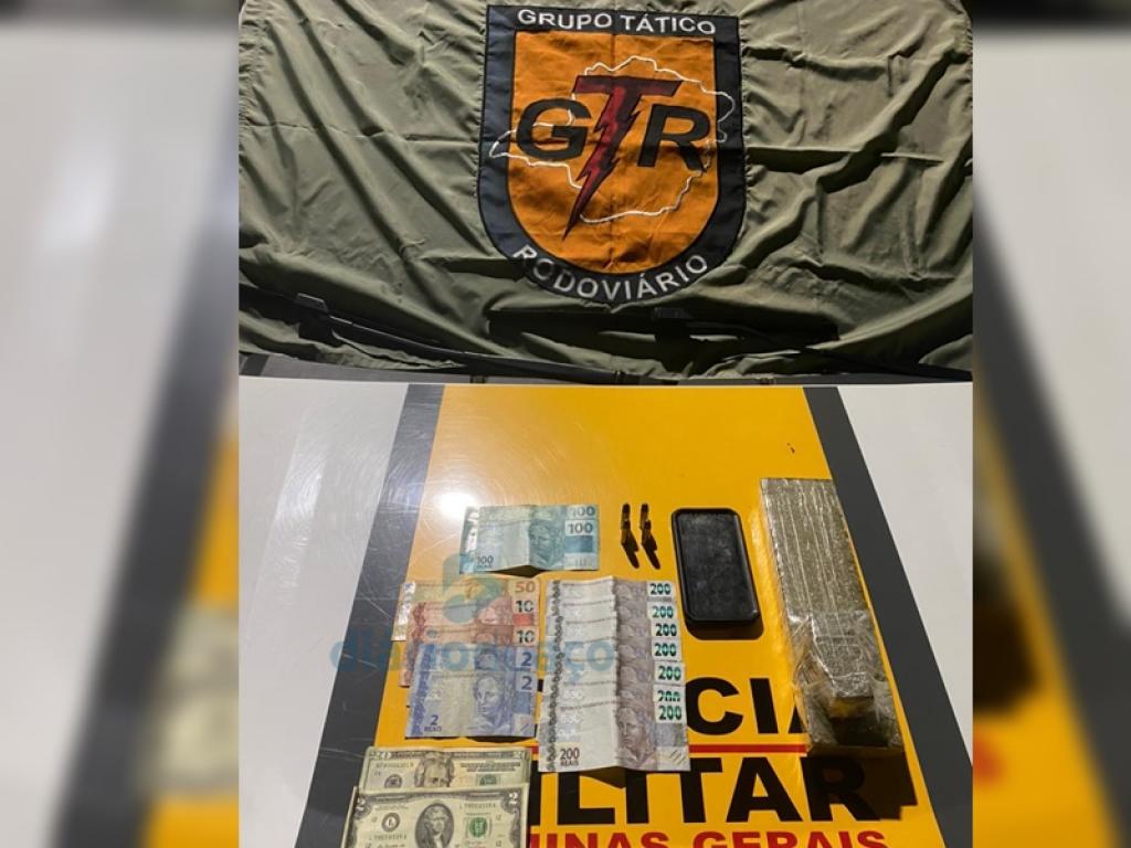 Na carteira do abordado estava a quantia de R$ 1.674 e 22 dólares dos Estados Unidos, dinheiro que segundo ele fora repassado por sua mãe. Todo o material foi apreendido e entregue no plantão da 1ª Delegacia Regional de Polícia Civil, em Ipatinga. A picape foi removida ao pátio credenciado pelo Detran.