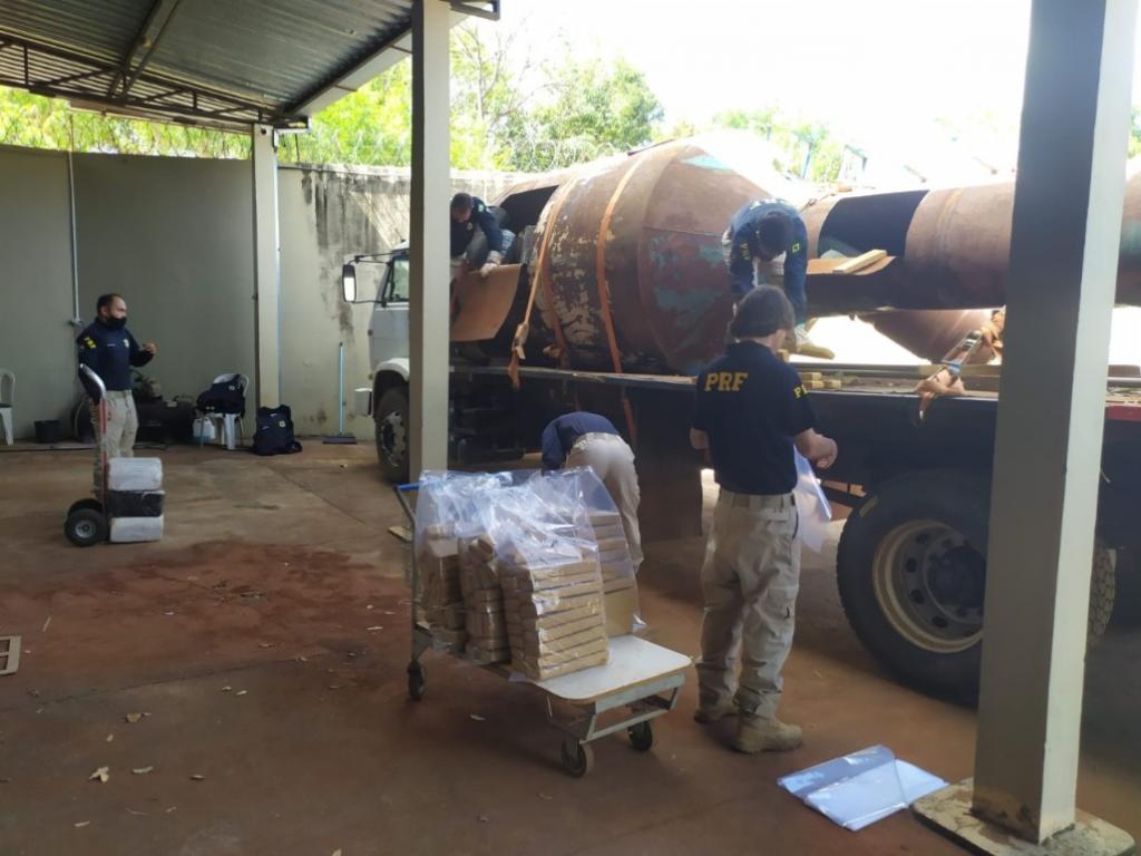 Droga avaliada em mais de R$11 milhões estava escondida dentro de uma caixa dágua transportada por um caminhão