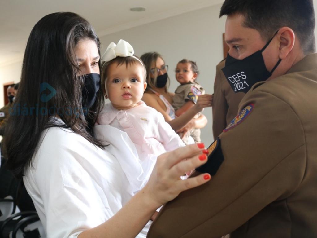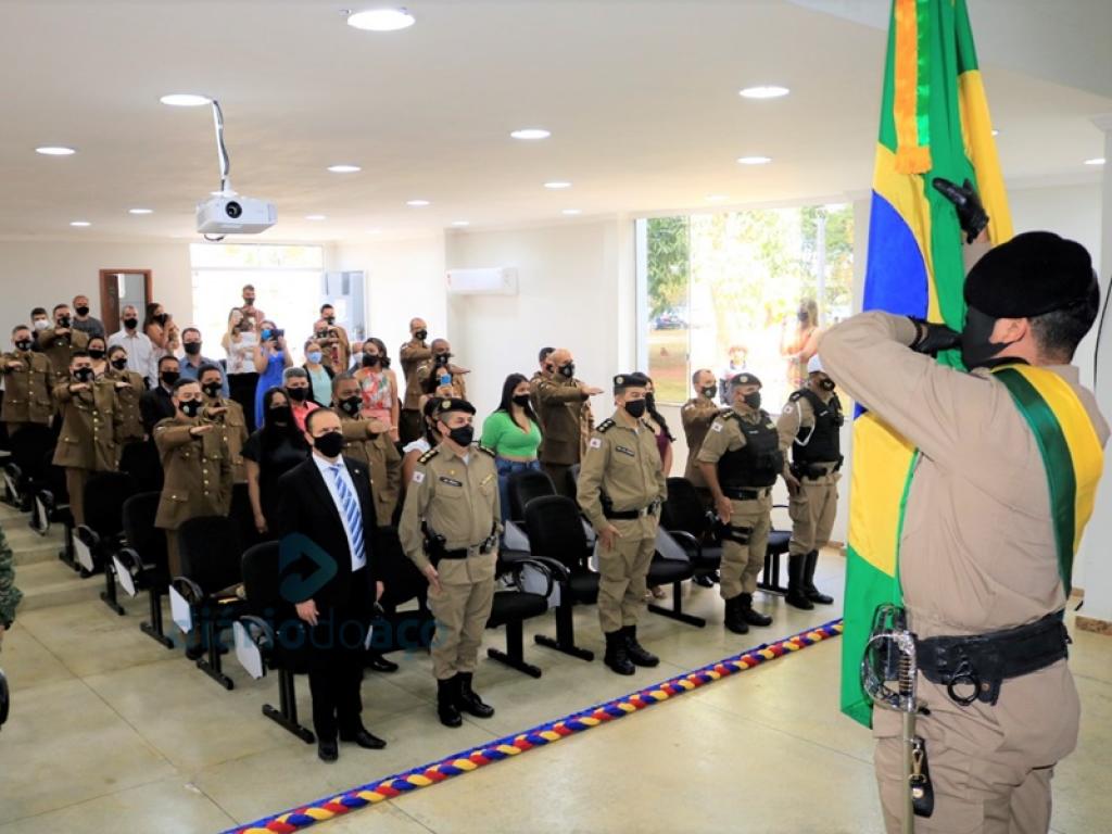 Após o momento de aposição das novas divisas, os novos sargentos da Polícia Militar prestaram o compromisso regulamentar à bandeira, e depois continência ao pavilhão nacional na solenidade que foi restrita diante da pandemia da covdi-19.