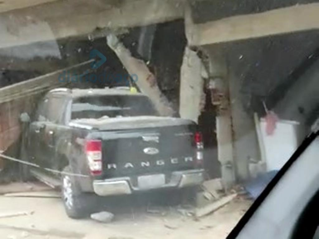 Os moradores relataram que acordaram assustados com um barulho e, na sequência, uma nuvem de poeira entrou pelas janelas. Eles foram verificaram o que tinha ocorrido e depararam-se com a picape no local. O veículo bateu no portão das garagens e danificou duas pilastras do imóvel.