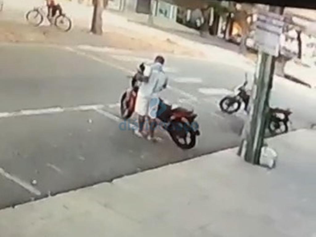 O momento que o autor foi filmado furtando a moto estacionada no Cidade Nobre, em Ipatinga