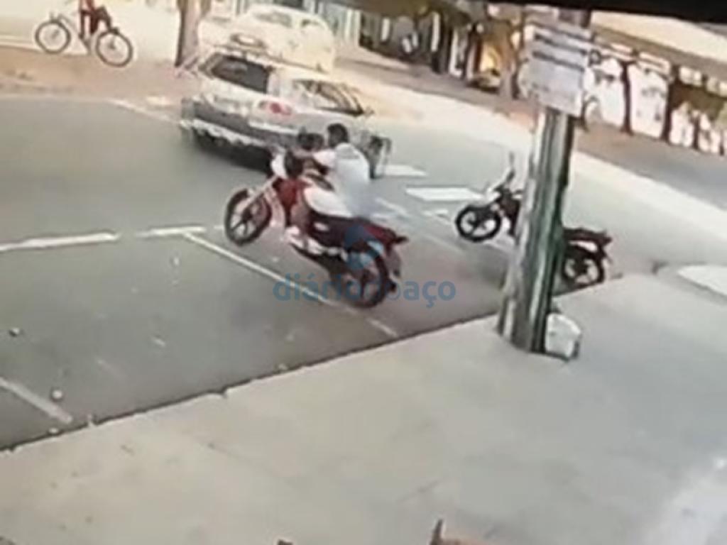 Os militares realizaram um cerco na localidade quando avistaram o suspeito na moto. O piloto não obedeceu à ordem de parada e acabou batendo contra a viatura da PM que realizava o bloqueio. O jovem caiu no impacto, mas se levantou e saiu correndo em direção ao rio Santo Antônio, onde foi preso na margem.