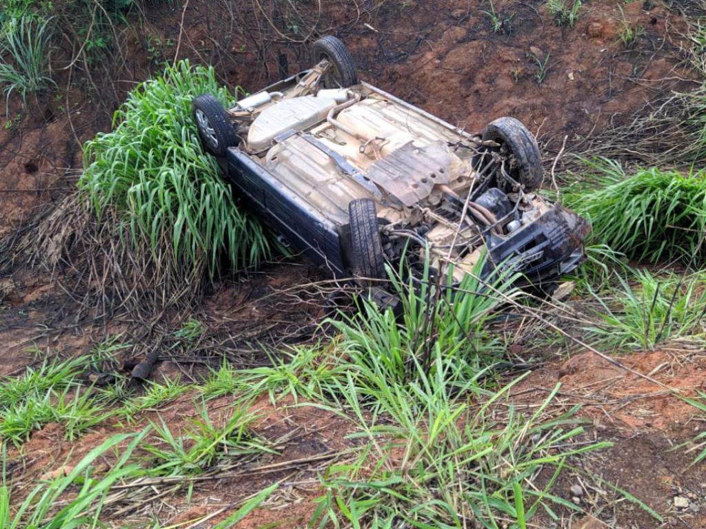 Fiat Uno capota na descida da avenida Maanaim em Fabriciano e quatro pessoas ficam feridas